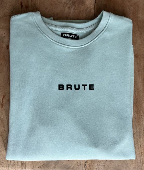 Brute Sweater blue green black letters